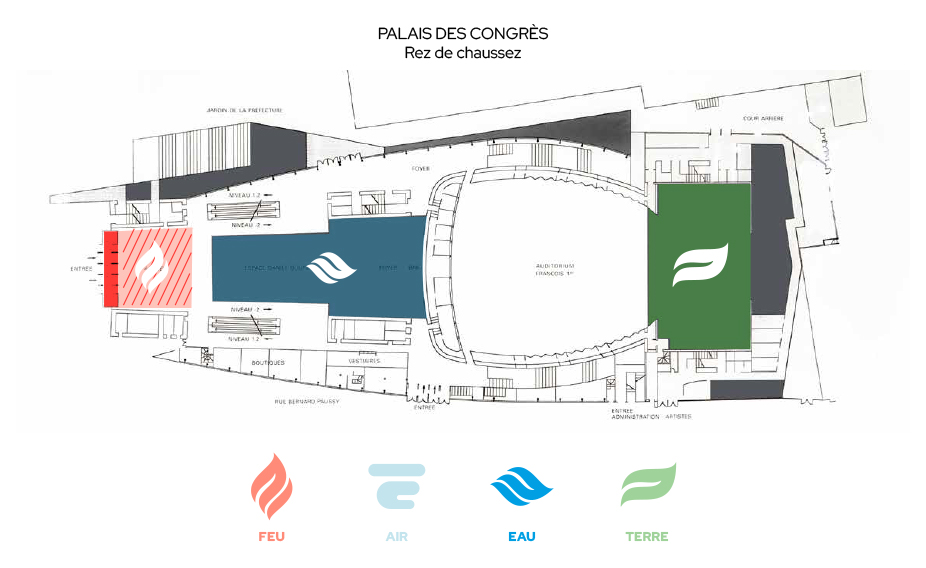 Identité visuelle d'une convention annuelle, sur le thème des 4 éléments. Les éléments sont modifiés suivant l'endroit dans lequel on se trouve.