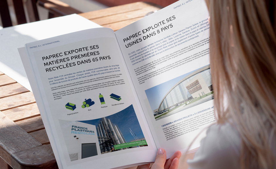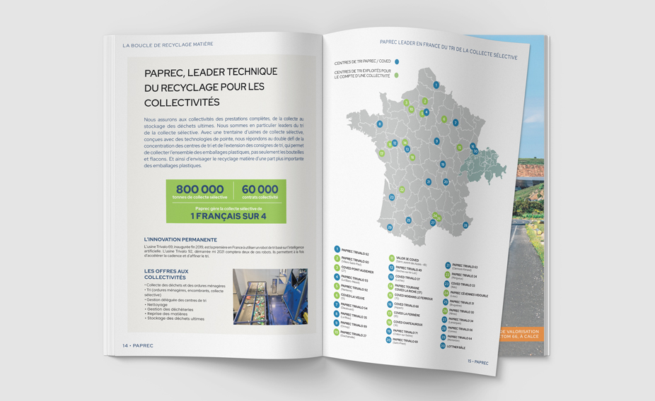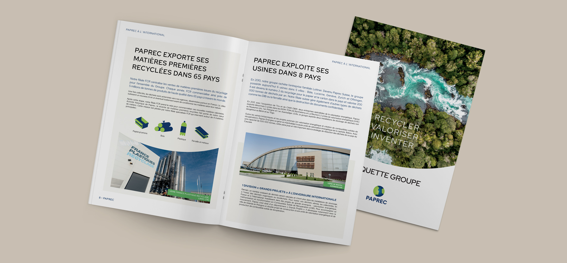 Mise en page de la plaquette groupe de Paprec, dans le but de l'actualiser et la moderniser.