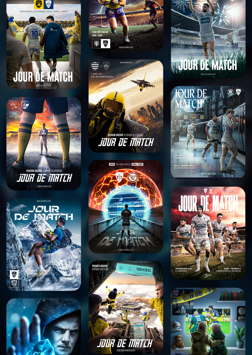 Visuels (principalement affiches de match) réalistes, racontant une histoire pour véhiculer des émotions. Les visuels étaient au départ pour un groupe Facebook de supporter, et j'ai décidé de le développer sur Instagram.